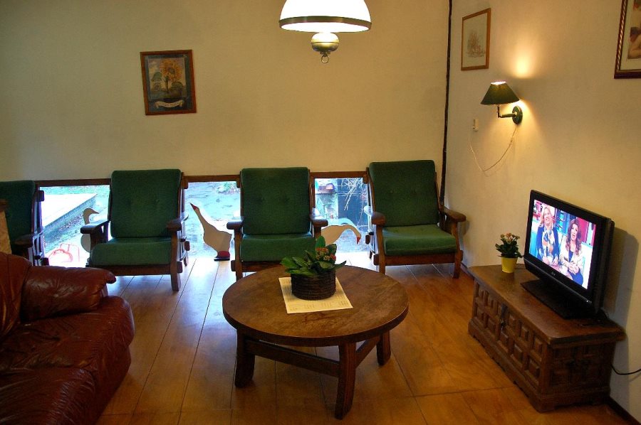 De eerste verdieping bestaat uit twee slaapkamers en een comfortabele zithoek met televisie.